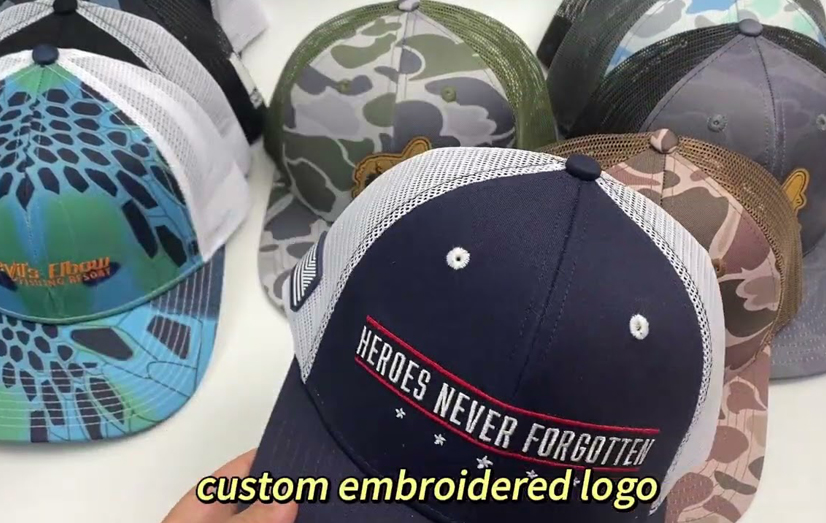 Logo position: front panel、right panel、left panel、back curved part、brim/visor
